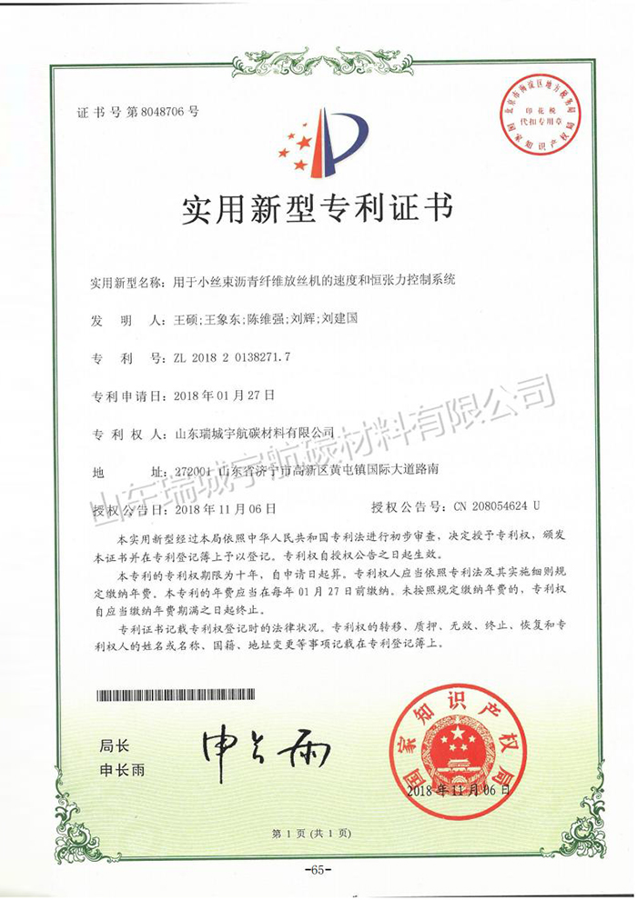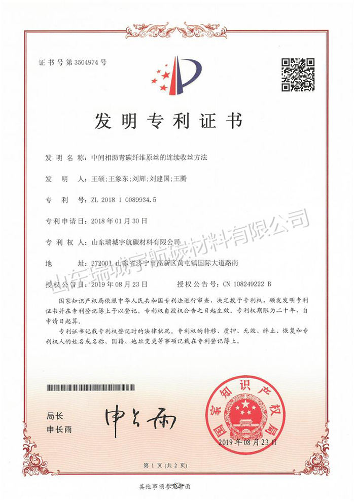 山東瑞城宇航碳材料有限公司位于濟(jì)寧高新區(qū)弘濟(jì)路 8 號(hào),占地 157 畝,建筑面積 10 萬平米,是專業(yè)從事高性能中間相瀝青基碳纖維、預(yù)浸料及復(fù)合材料的研發(fā)、生產(chǎn)、銷售和應(yīng)用的高新技術(shù)企業(yè),成立了碳纖維研究院,建立標(biāo)準(zhǔn)配置、設(shè)備齊全的碳纖維檢測(cè)中心,具有 CMA 檢測(cè)檢驗(yàn)資質(zhì)證書。與國內(nèi)多所高校、院所合作,設(shè)立了聯(lián)合研發(fā)中心、應(yīng)用開發(fā)中心、博士后創(chuàng)新實(shí)踐基地等,擁有一支實(shí)力強(qiáng)大的技術(shù)研發(fā)隊(duì)伍。